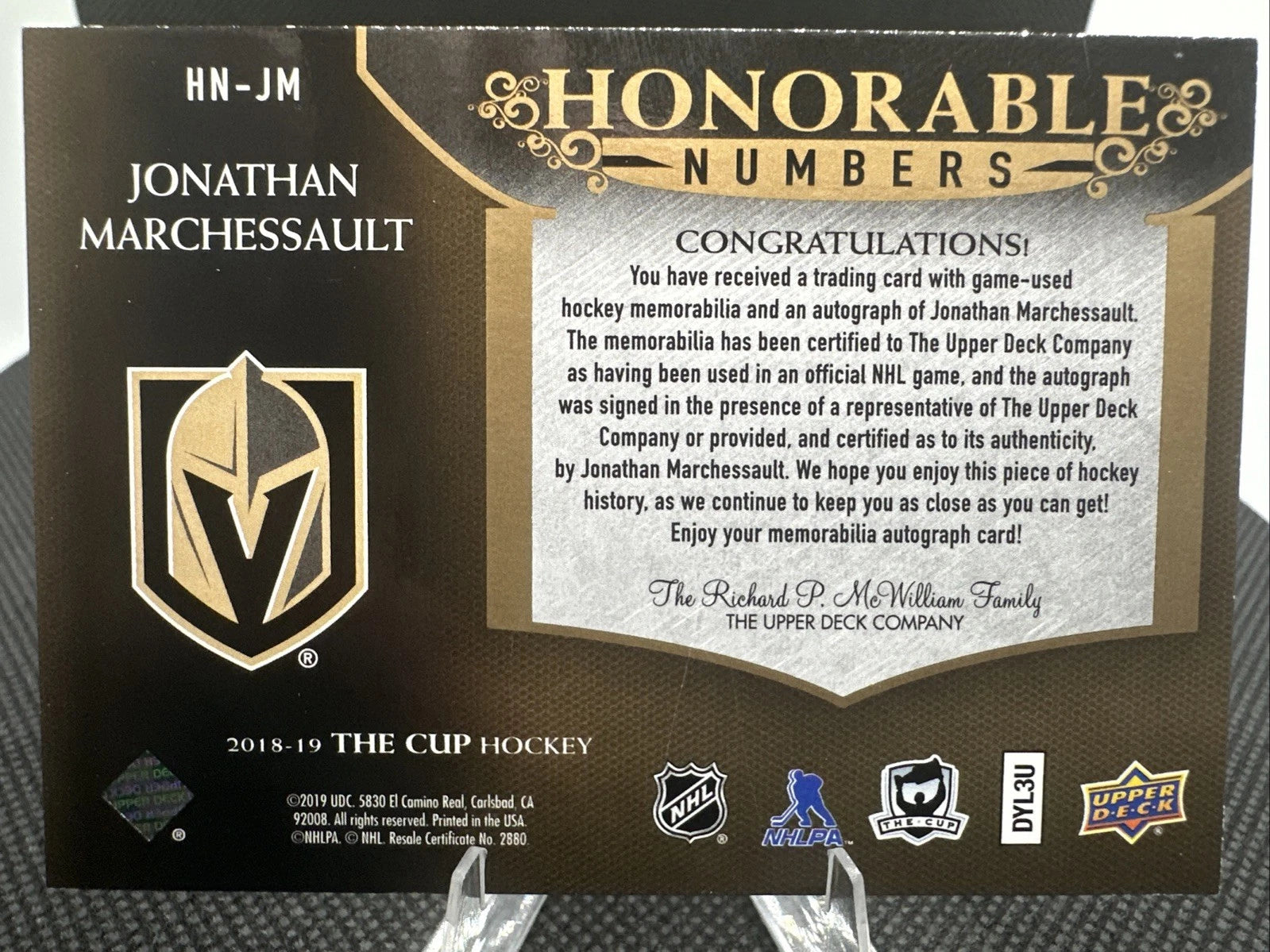 Add this 2018-19 The Cup Honorable Numbers Jonathan Marchessault /81 to your collection. A rare NHL collectible card for serious collectors.